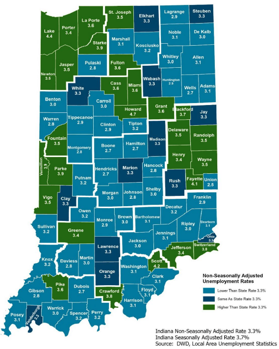 Source: Indiana Department of Workforce Development, Research and Development, Local Area Unemployment Statistics