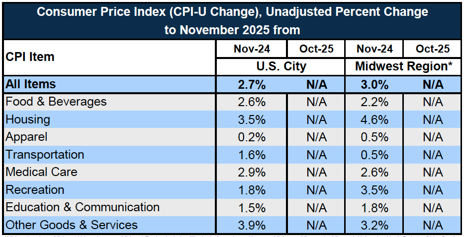 *Midwest region = Midwest Urban Average. Midwest Region includes Illinois, Indiana, Iowa, Kansas, Michigan, Minnesota, Missouri, Nebraska, North Dakota, Ohio, South Dakota and Wisconsin | Source: U.S. Bureau of Labor Statistics